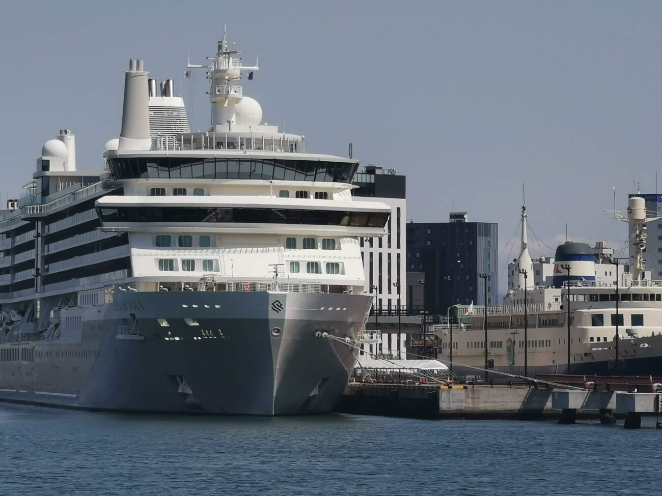 さらにその左にも、小さく見える客船が入港しています。