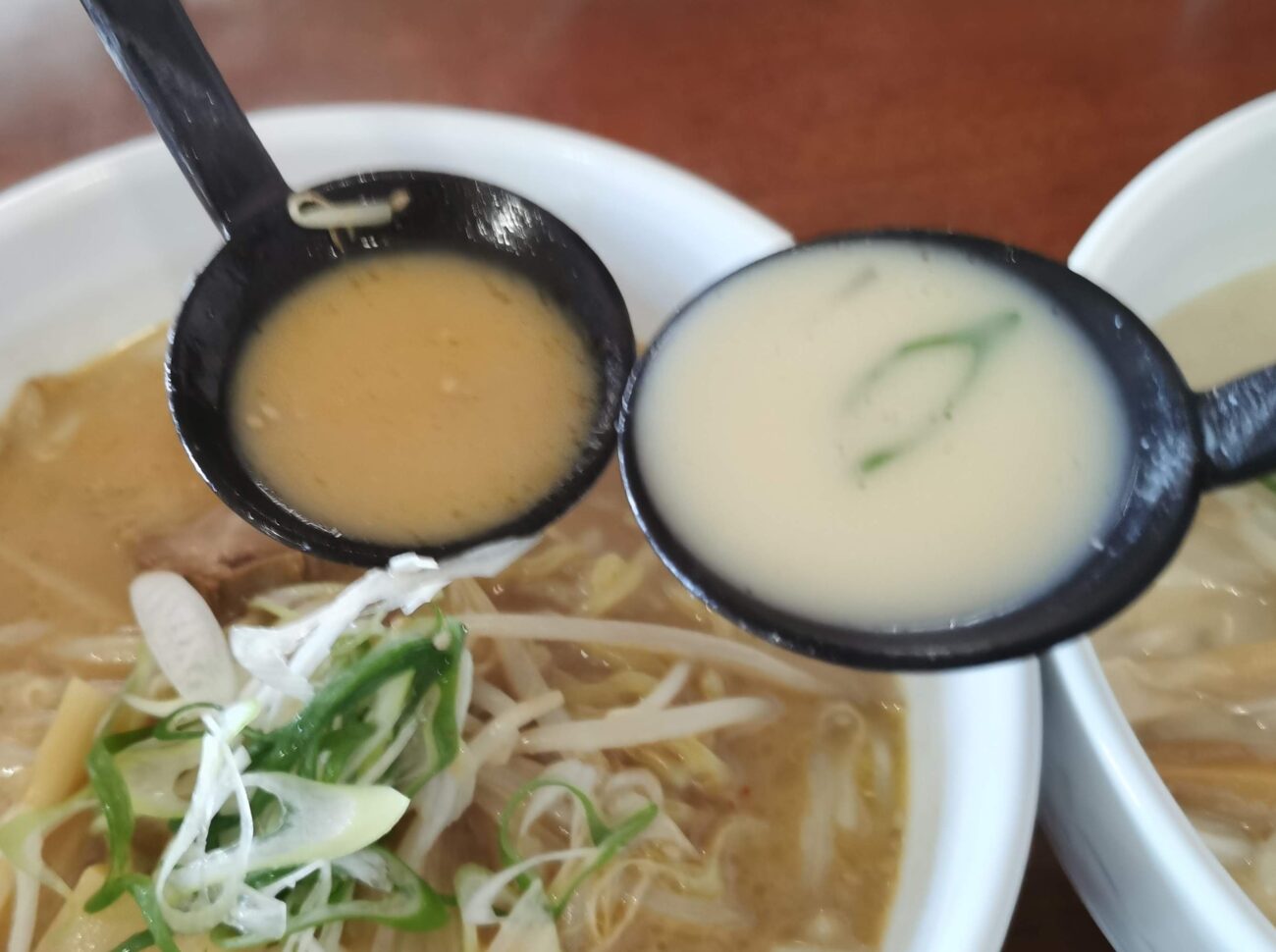 友人の赤味噌と白味噌のスープの比較です。