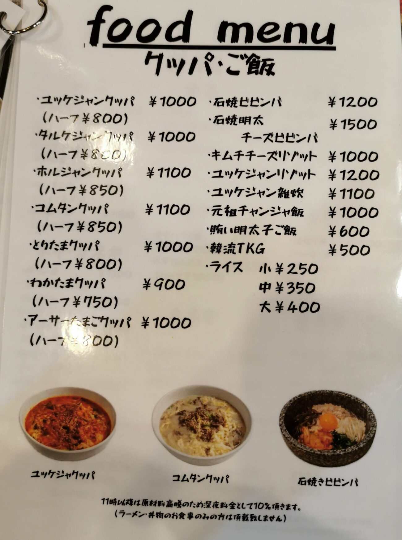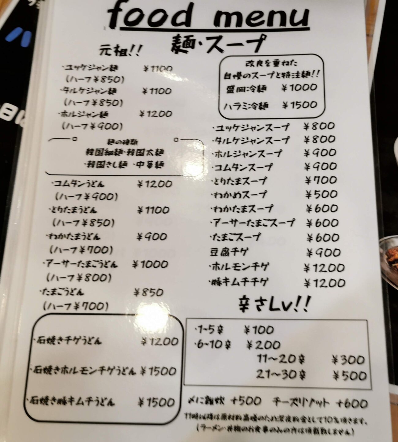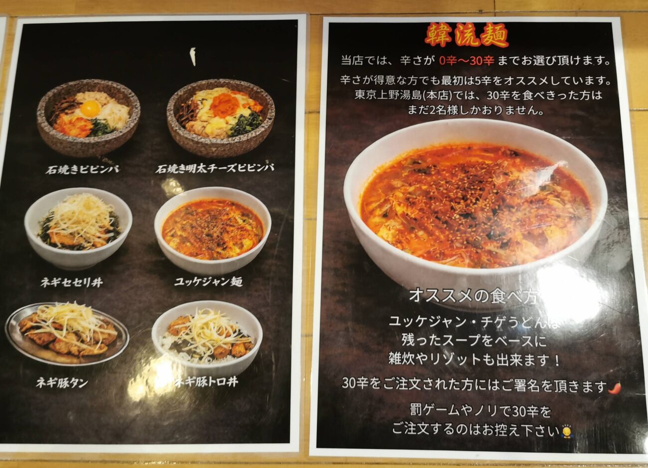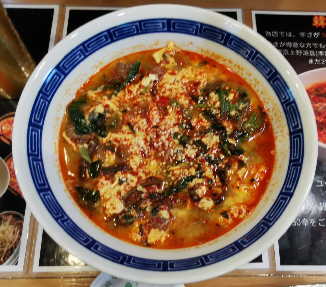 今回は目に留まった「ユッケジャン麺」(1100円)を注文しました。値段は1100円
