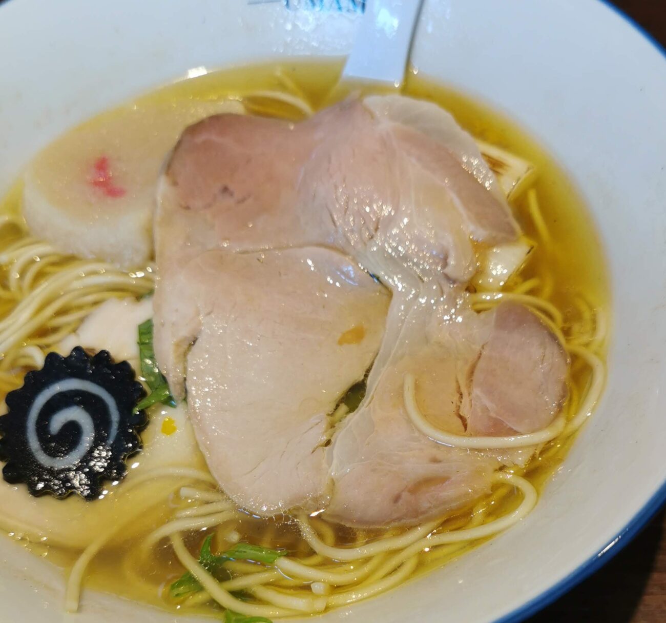 運ばれてきた一杯は、思わず「おっ」と声が出そうな美しいビジュアル。黄金色に澄んだスープ、端正に収まる細麺、存在感あるチャーシュー。こういう“顔のいいラーメン”って、期待値が自然と上がりますね。🤗