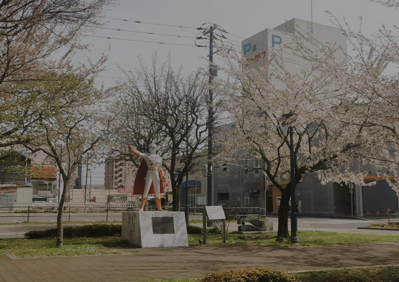 大門の月光仮面像近くの桜も、この風でだいぶ散ってしまったようです。満開のシーズンを前に少しもったいない気もします。
