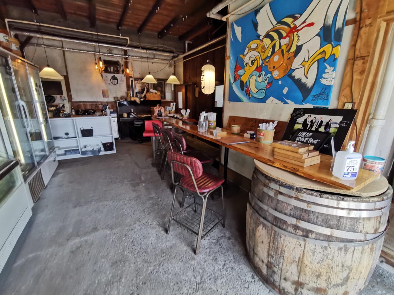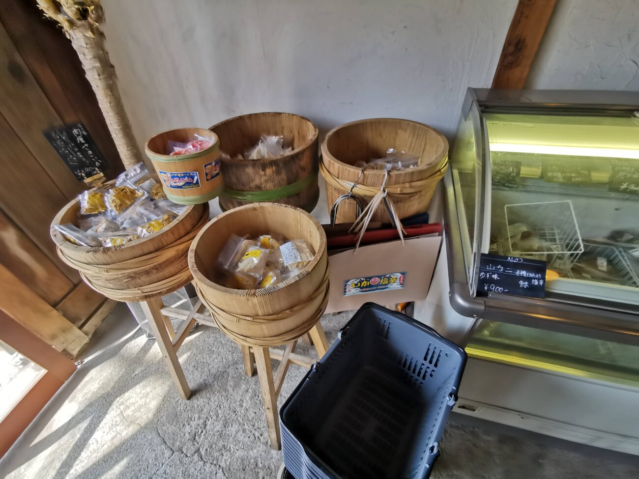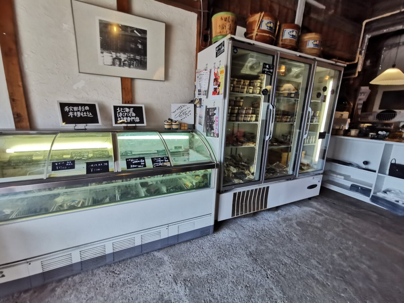 そして塩辛の木樽で有名ですので、店内にはいっぱいの木樽があります。