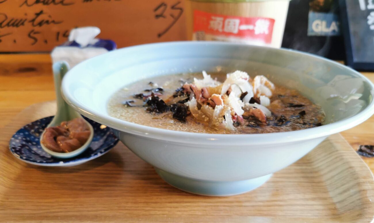 具材の食感も楽しく、非常にパンチがあります。 ただ、自分としては少し塩味が強く感じられたので、お酒のつまみや追いごはん(プラス100円)と一緒に楽しむのが正解かもしれません。追いごはんを注文しなかったのが悔やまれます。なんせ指導が入っらばかりなんで。