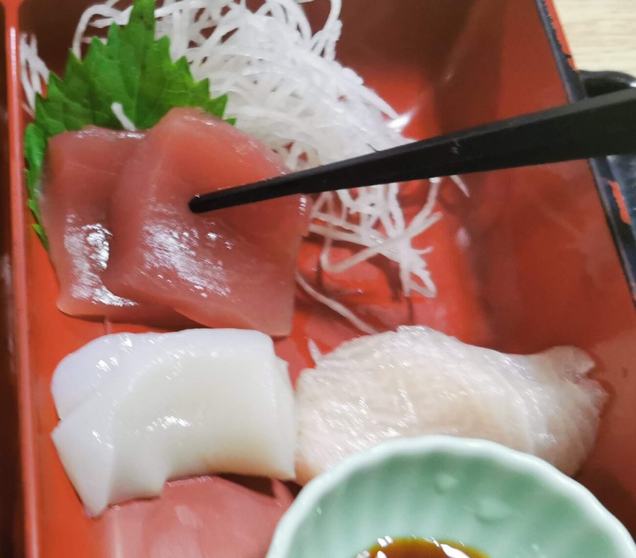 刺身はマグロとタコと白身魚。