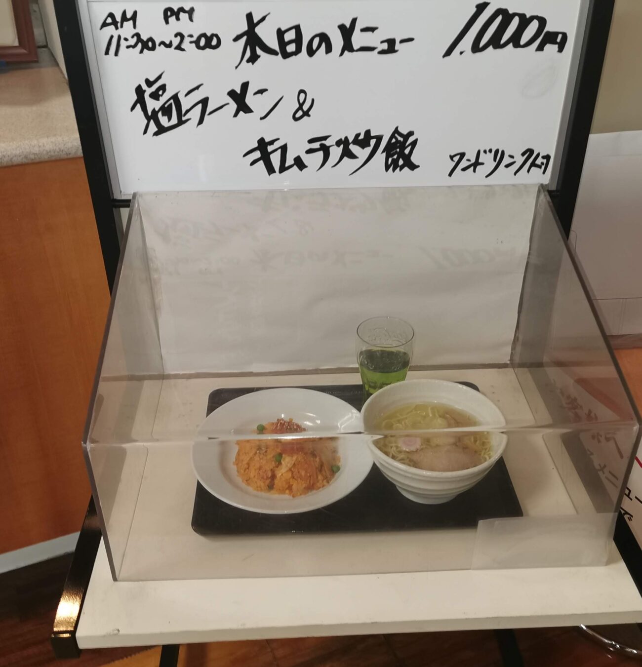 入口には「本日のメニュー」があり、この日は「塩ラーメン&キムチ炒飯」のセットが1000円。なかなか惹かれます。