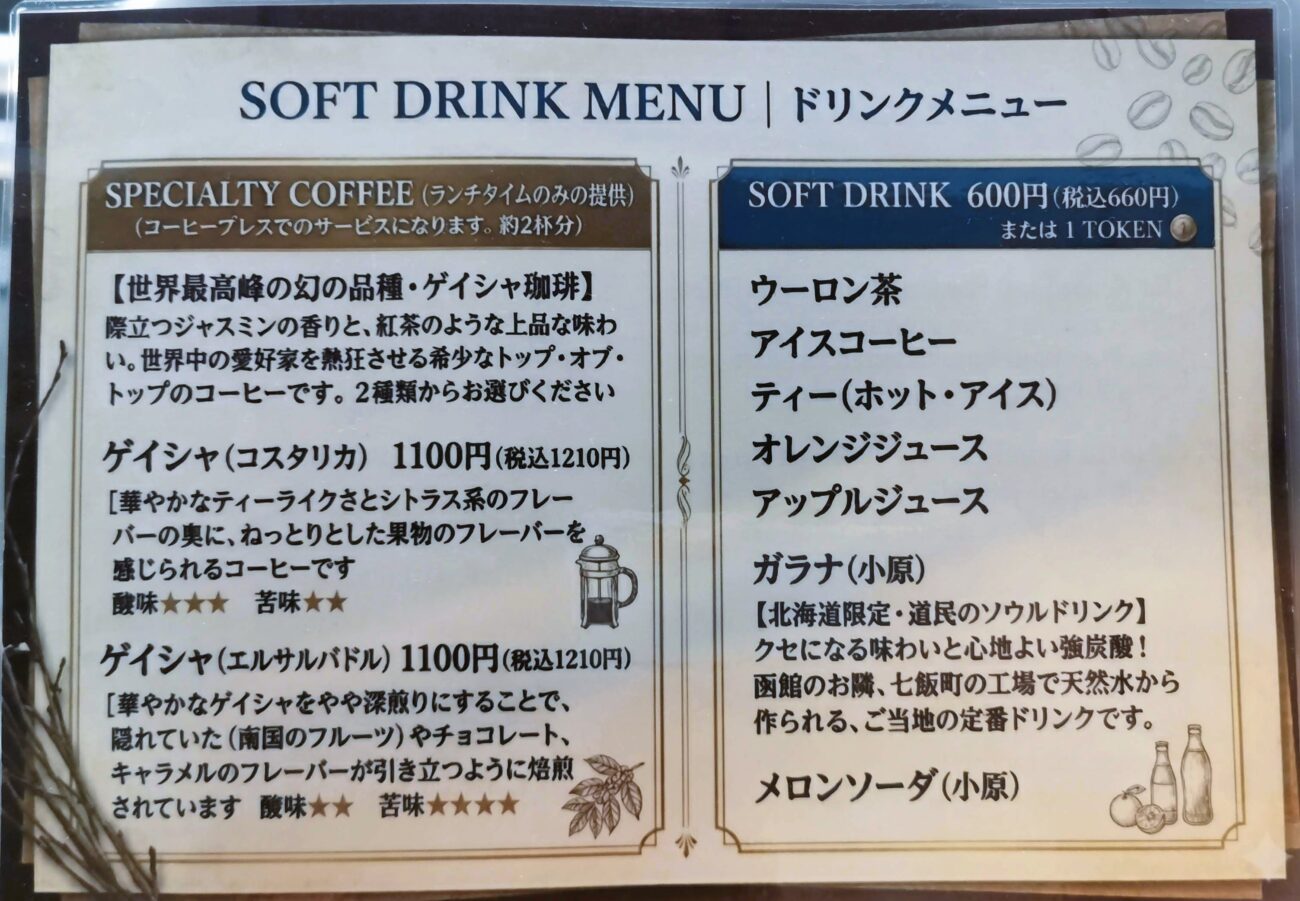 ドリンクのメニューです。
