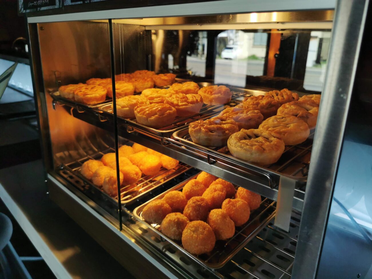 パイとコロッケが並んでいます。