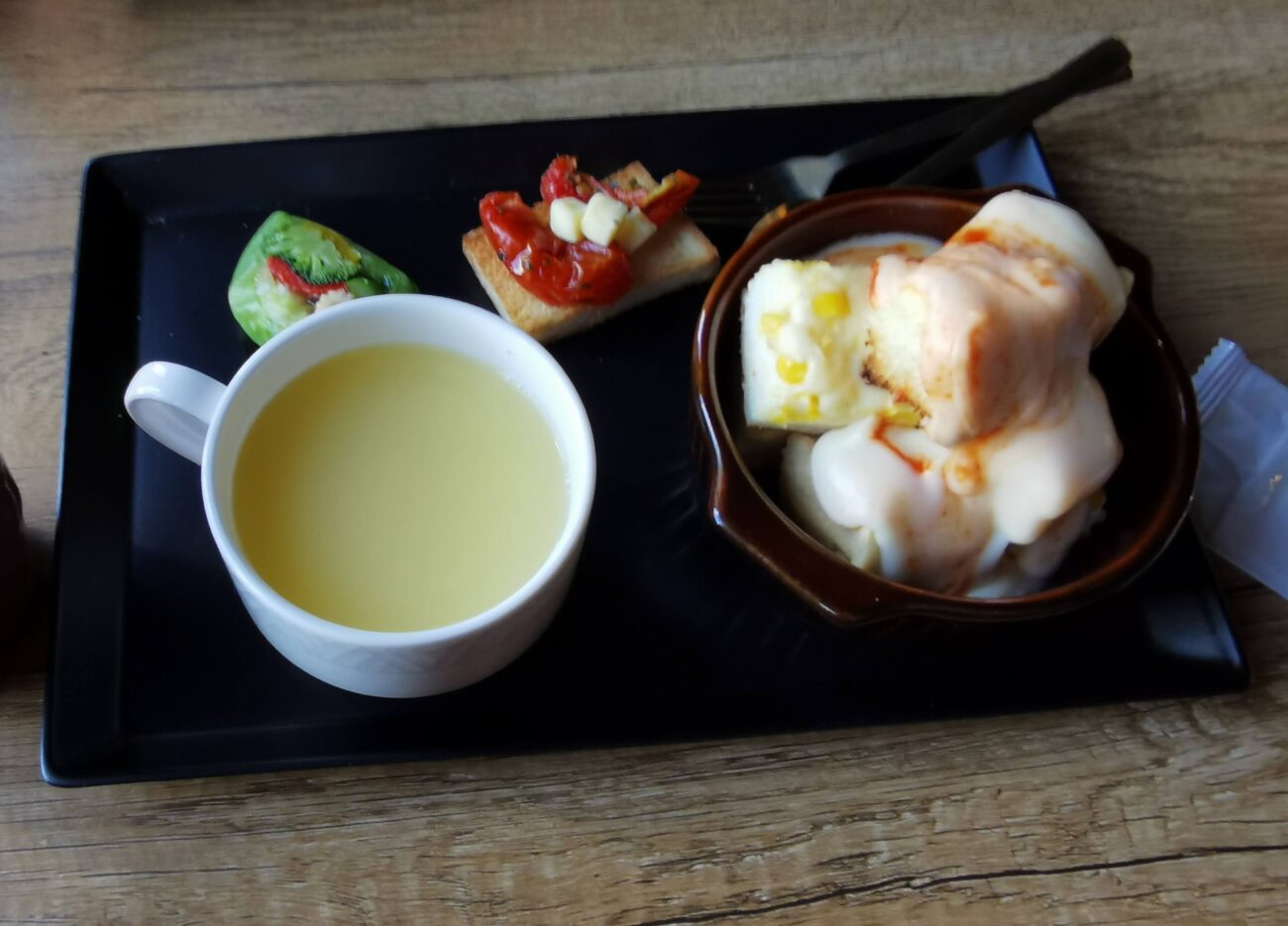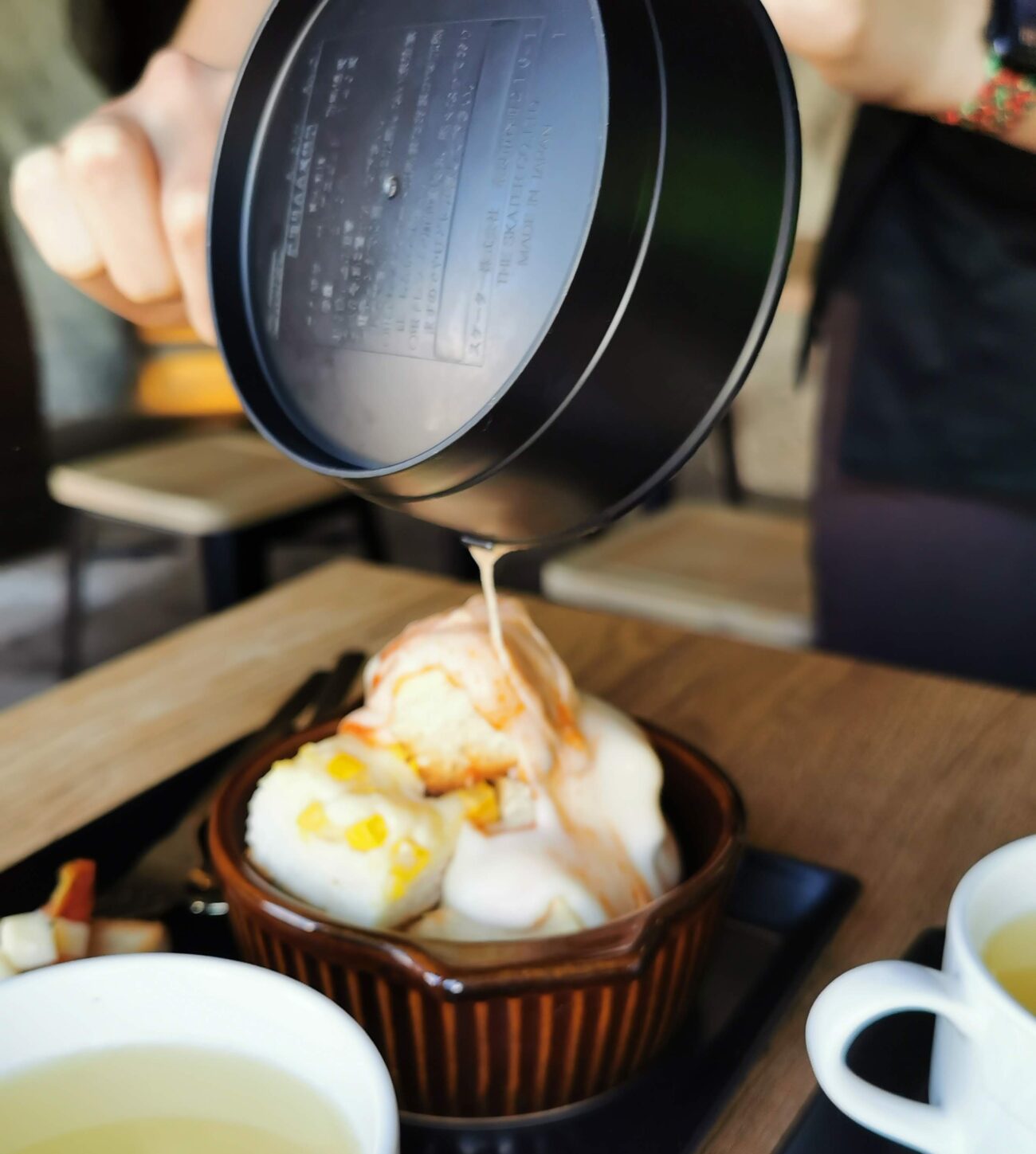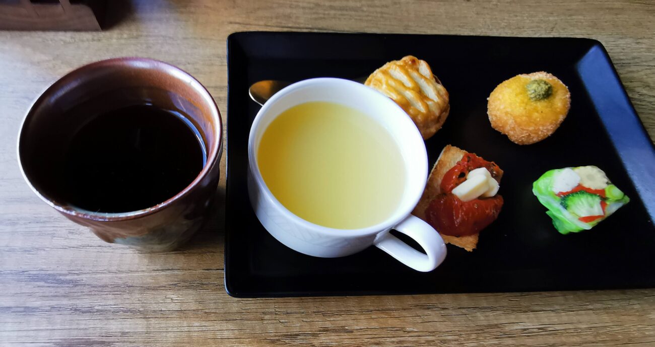 ドリンクはホットティーです。